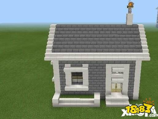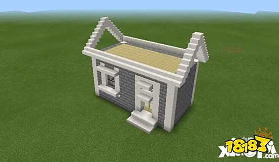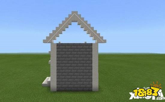 4.前右方搭建一扇门,楼梯坎用半砖摆放。