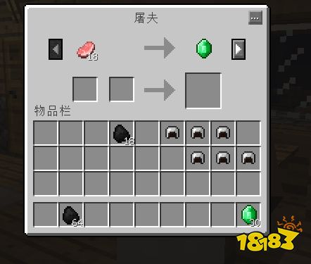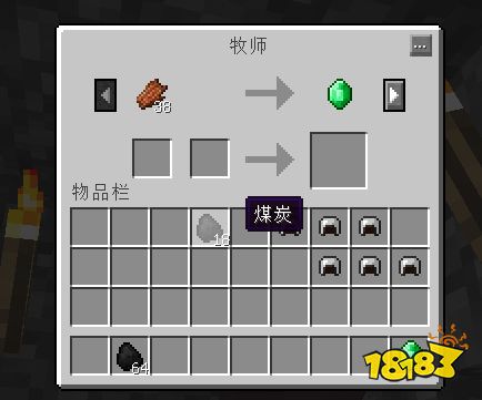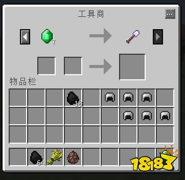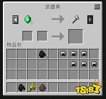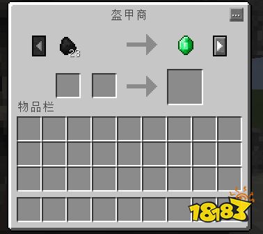 任何一种商人都会提供向你购买/出售这两种类型的交易方式,我们可以看到盔甲商向你索取煤而提供绿宝石,考虑到绿宝石的稀有性,这是一笔划得来的交易,况且我们还需要使用绿宝石来获取其他资源。