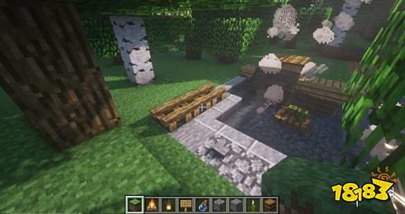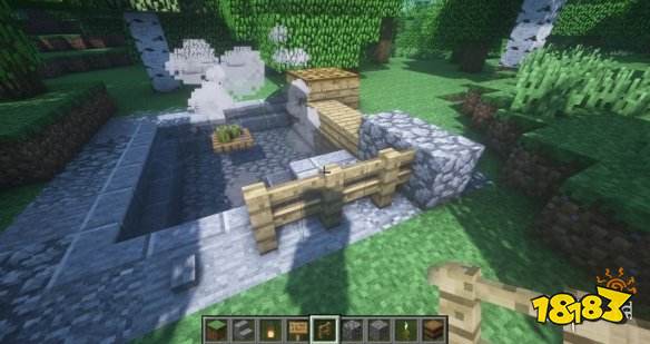 整个温泉周边也可以考虑用圆石和橡木栅栏组合成温泉的围栏~