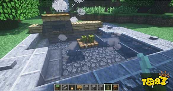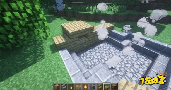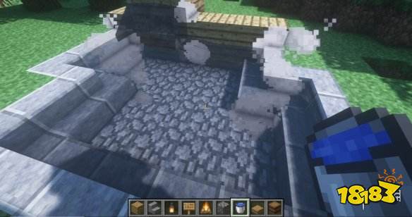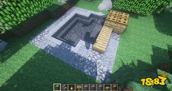 接下来为了整体形状更好看,用三种石块(石块,安山岩,圆石)随意的将温泉池外轮廓补出一个矩形~