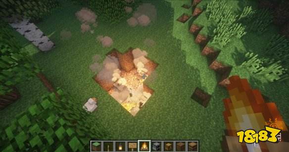 神奇的是,虽然圆石块是实心块,但是篝火的烟依旧足够穿过它。