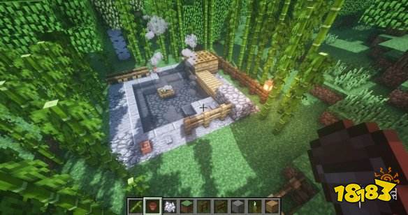 接下来围绕着温泉池种植竹子。然后可以交错着用骨粉催化到不同的高度!这样就能让温泉池被竹林环绕。