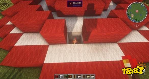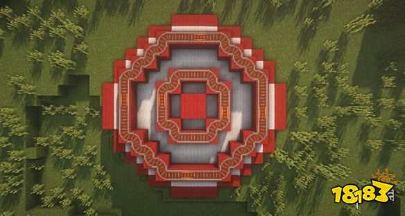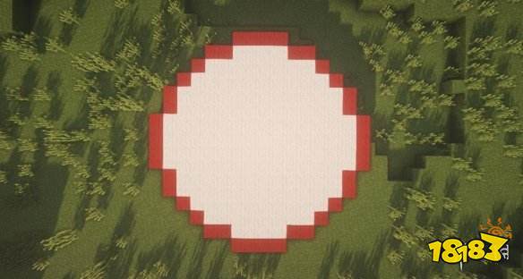 首先用红色羊毛和白色羊毛围出旋转木马的底座。