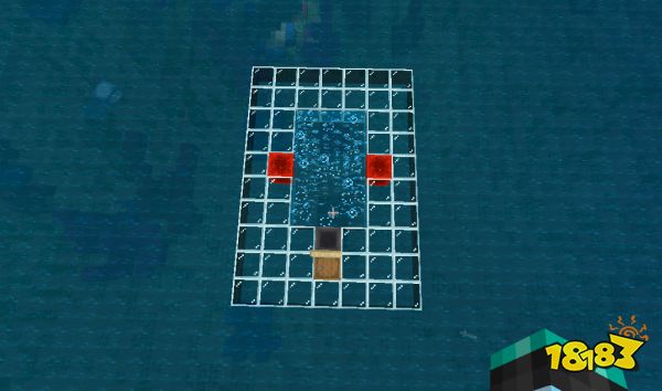 还记得咱们在海底用灵魂沙填的是一个“日”字型的区域嘛,至于那两个空出来的缺口,现在也要派上用场了,在这两个区域对应的海面上,各自放置一格流动水,用于把窒息而死的鱼推到矿车边上。