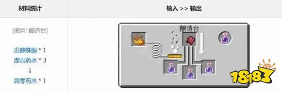 制作凋零药水要使用酿造台,在酿造台处用一个发酵蛛眼和三个虚弱药水进行酿造就可以制作出一个凋零药水了。