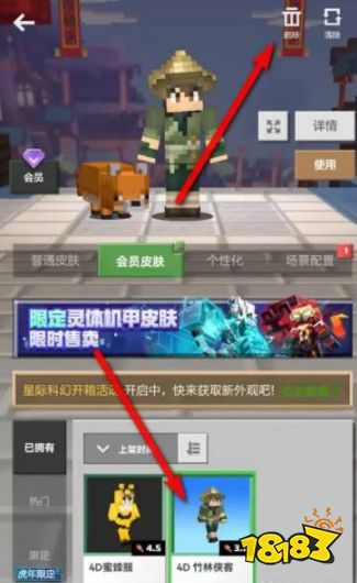 点击选中需要删除的皮肤,点击右上角的删除图标。