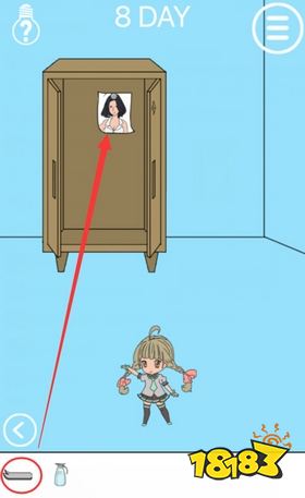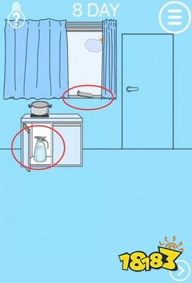 如下图:柜子里拿到水壶,拉开窗帘拿到铲子,然后去右边房间。