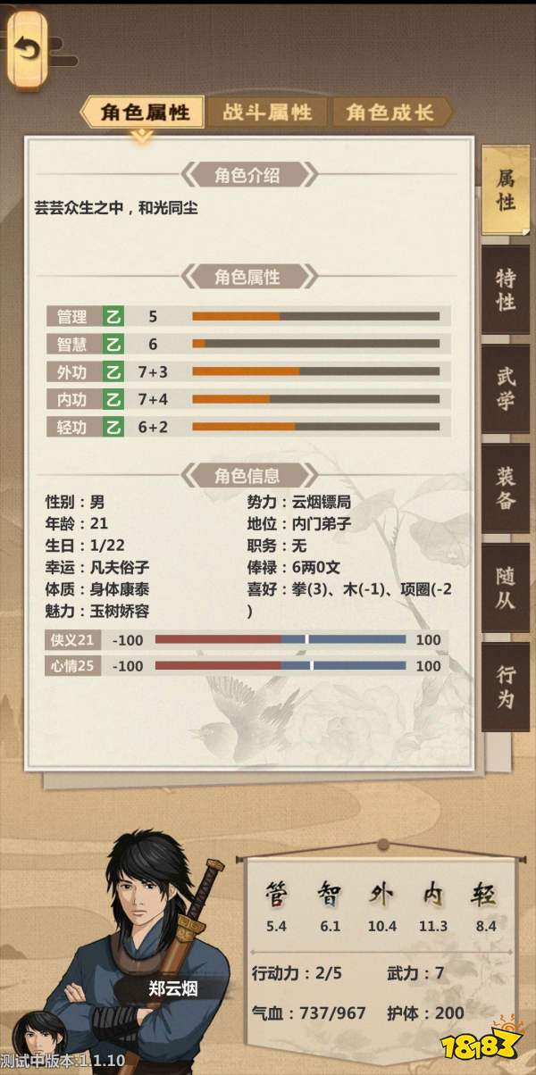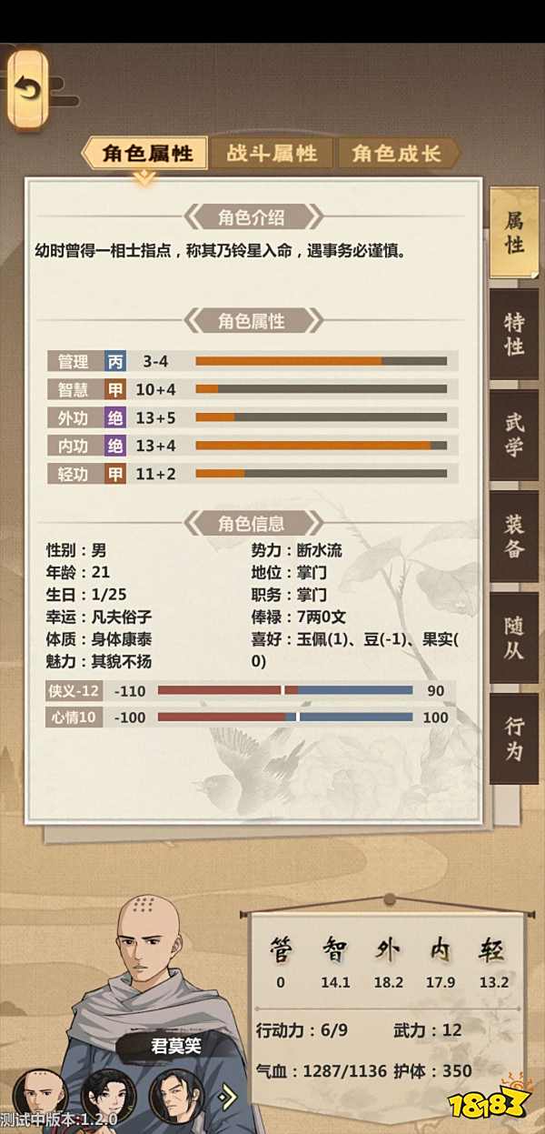 9.由目前版本来看最好养成起码2个武力担当。(包括掌门在内)
