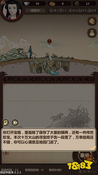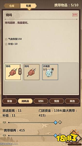 8.远行时能吃食物,所以每次远行最好带上食物,有机会修炼武功就不用担心没补给。