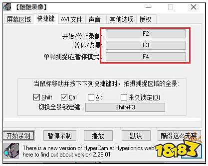 在这里也可以使用快捷键控制录制的开始和停止,这边的快捷键是可以自己设置的,建议大家用键盘最上方的F1-9按键,当然不要选择F5会被刷新的!