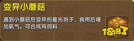 遇到小蘑菇后变异的星光孢子,使用后增加氧气。可合成鸡饲料。