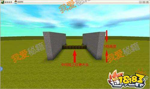 水槽挖好后,在上面放上方块,方块的高度为5格高,其次在中间放上木头;