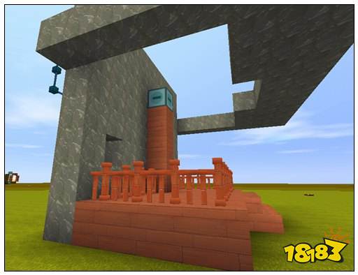 最后一步就是美化部分,用一面岩石墙把电梯电路和搭载部分给隔开,然后在二楼搭一个平台(也必须用自然生成的方块,比如岩石),其实也就是二楼的地板。