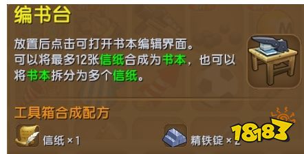 制作书本需要使用编书台和写好的信纸。编书台需要1张信纸,1个工具箱,2个精铁锭使用工具箱合成制作而成。
