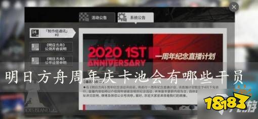 以上就是明日方舟周年庆卡池会有哪些干员的全部内容了,大家希望哪个角色会出现呢?如果想了解更多精彩内容,请继续关注18183下载网明日方舟专题!