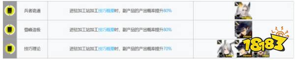 芯片:芯片加工也是产出“同一档”的材料,但其本质是“三换二”,即:用三个狙击芯片组,去换两个术士芯片组。哪怕有几率掉落副产物,这也绝对不是一笔合算的买卖。只有当大家特别着急精英某个干员的时候可以考虑,其余时间不用管这个功能。性价比干员推荐:12F、猎蜂。新干员风笛的加成高了他们10%,但是需要精二,性价比不足。