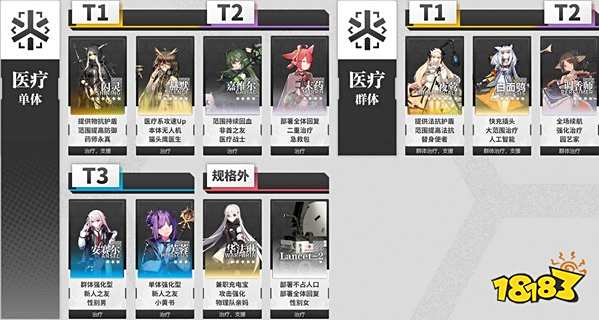 本攻略分为以下几个部分 先锋 近卫 重装(防/奶盾) 特种 狙击(单/群体) 术师(单/群体) 医疗(单/群体) 辅助 - -梯度说明