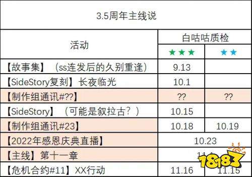 3.5周年庆会在2022年的11月份左右开始。其间会推出新的限定角色,并且会返场往期的限定角色,小编预测会返场W,迷迭香,耀骑士临光,三位。并且推出一位新的限定角色至于是不是异格就不知道了。