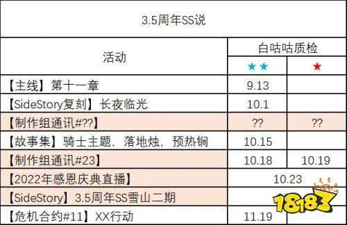 总之3.5周年庆会在2022年的11月份左右开始。其中会返场W,迷迭香,耀骑士临光,三位,并且上线一位新的限定干员和一位新的6星陪跑。至于限定是异格还是正常限定就不确定了。