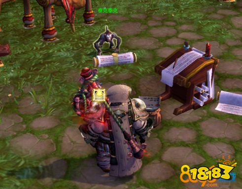 首先各位在职业大厅可以看到一个可以接的橙色叹号任务。之后在大厅西侧与任务物品,大家可以看到AG时期的惹祸精周卓,左边会有一只猢狲叫泰克泰克,他是可以将你传送到风暴酿酒厂的。
