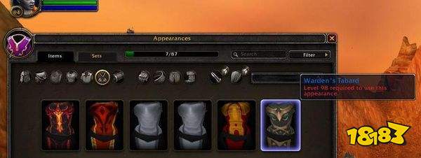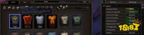 尽管幻化解除了声望限制,但解锁战袍幻化还是需要达到相应阵营声望要求,比如你需要在守望者阵营达到崇拜才能购买到守望者战袍,将这个外观加入到藏品当中。