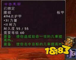 属性及其强大的腰带,几乎找不到缺点,装备等级71级几乎就是BWL的水平。出了这个腰带基本就要是要拼分甚至要清光分数才能入手,事实上这件装备确实值这么多的DKP。