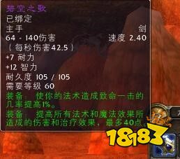 可以说是魔兽世界60年代最经典的单手法系武器,属性全面,外观美型,外加文雅的名字。主要是1%致命在MC时代实在太强,我记得当年我们的MC团很多法系都憋着自己的DKP准备全分拼这把武器。后期暴雪为了纪念这把武器,后续版本还出了强化版本的碧空之歌。
