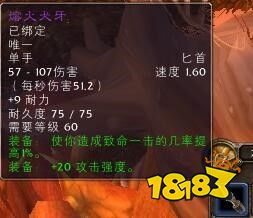熔火之心老2BOSS掉落的土特产弓,属性以猎人眼里看起来平平无奇,但是盗贼和战士早就流出了口水。这可是少有加命中的远程,尤其对于狂暴战士来说这就是用一辈子的极品。