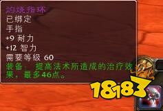 治疗职业的福音,真正能完爆这个戒指至少要达到奈法级别。46点治疗效果在熔火之心这个副本里真是鹤立鸡群,而且不是唯一,是可以装备两个的。曾经六十年代有少许公会真有治疗为了这个戒指闹到公会分裂,一些输出爱好者完全不明白为什么他们会对一个治疗的装备闹的这么面红耳赤?