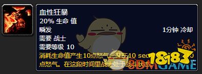好了,言归正传。首先在开怪之前你需要使用一次“血性狂暴”技能,并在使用之后等待10秒左右的时间,让这个技能给你提供最多的怒气。