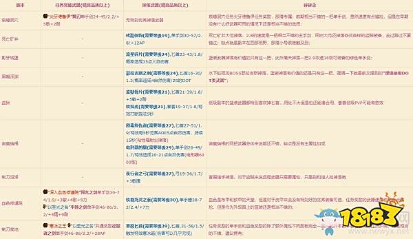 以下是在升级过程中副本中推荐获取的武器(请在选择时认准单手剑)