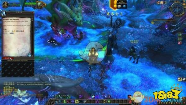 噬渊行者带着玛卓克萨斯大主教的信前往炽蓝仙野寻求寒冰女王的帮助。初到就遇上了月莓女勋爵。她很爽快地答应了引见寒冰女王的请求,只是最近炽蓝仙野心能枯竭,自然之灵一片混乱,噬渊行者和她一边走一边帮忙解决沿途的问题。