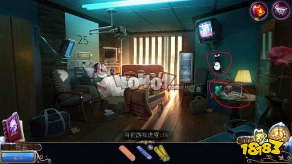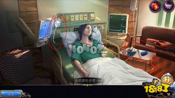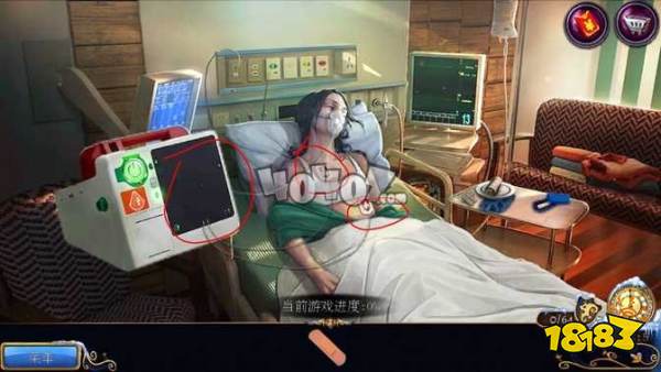 3、点击圈内柜子,用耳镜打破玻璃得到除颤器。再点击女孩,除颤器对女孩使用。点击女孩脱去上衣。如图将贴片贴好位置点击绿色按钮,剧情。3x、3x2