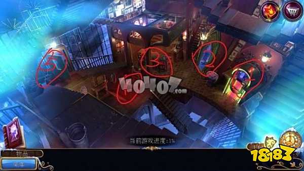9、点击灯,点击灯盖,点击灯泡得到。点击途中3处,使用月亮,得到门环。前往4处进入餐厅。9x