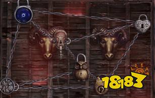 11、点击绿衣模特左侧点击过的挂锁围栏,用指甲锉对钥匙使用得到钥匙,再次前往餐厅。点击之前密码箱的发红光地板,使用钥匙,小游戏保证每两条锁链都互不相交即可通关。参考解法如图。安装两个门环,连续打开打开。11x