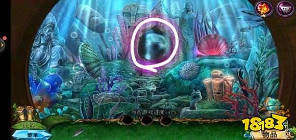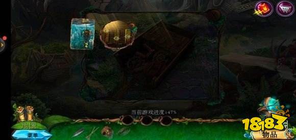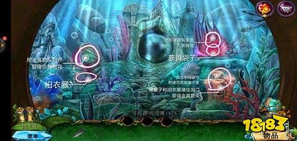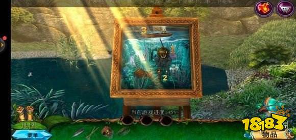 3、点击木牌,把帆布碎片放上去,点击碎片会旋转宝宝们,完成小游戏获得潜水服图纸。