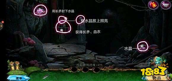 10、把血衣和水晶放在上面获得彩色水晶,点击洞穴门把彩色水晶放在上面进入小游戏,完成小游戏进入洞穴。