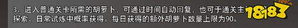 恢复时间是九分钟一个,刷一次本六个萝卜,经测试红蛋(boss门票)大概刷五次(第十关)掉一个。换算成时间也就是4.5小时一个,每天还有90萝卜可以刷出来。粗略计算每天9-10个红蛋获取量。