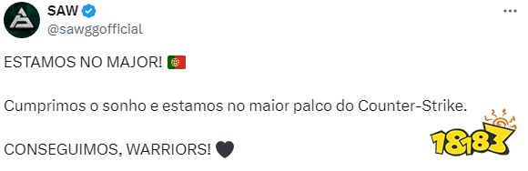 “恭喜SAW成为CS历史上第一支晋级Major的葡萄牙战队!”