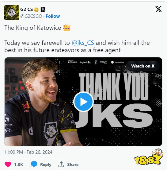 G2宣布, jks已经与该俱乐部分道扬镳。尽管他曾是IEM卡托维兹和科隆赛事夺冠的关键队员,但队伍的成绩下滑后,他于去年11月被Nemanja Isaković | nexa所替代。