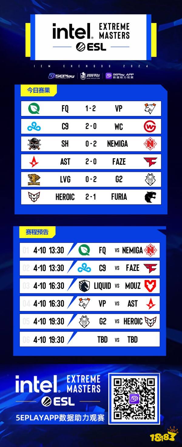 IEM成都2024的第二个比赛日已经结束,让我们来一起看看赛况如何,以及第三比赛日的赛程预告吧。
