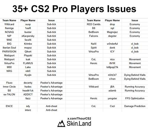 ThourCS近日在社交平台发布了一项针对35+位职业选手的调研结果,揭示了当前CS2游戏中最为职业选手诟病的五大问题。这份由一线选手共同票选出的问题清单,反映了当前游戏机制与职业竞技需求之间的差距,其中sub-tick机制以压倒性优势位列榜首。