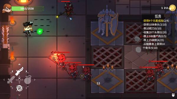 在这个游戏中,你将扮演一位年轻的英雄,与各种敌人战斗,完成任务,收集宝藏,并升级装备,最终击败所有boss,完成所有的地下城,带领王国走向和平。你可以选择不同的角色,比如弓箭手、巫师或海盗女孩,看你喜欢哪种玩法。总之,最重要的是通过不断战斗和完成任务来提升自己。