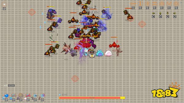 游戏中最重要的玩法就是利用史莱姆的自动射击能力对抗入侵者,同时通过拾取积分宝石和幸运骰子来升级、进化你的宠物,保持生存并不断变强,毕竟只有史莱姆能伤害那些未知生物,而且它们还能进化哦!