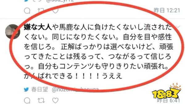 再加上初号爱出镜率越来越低,一时间各种“初号爱因人气太高难以管控,资本欲将其架空”的阴谋论甚嚣尘上。而直接引爆粉丝怒火的则是初号爱中之人·春日望于7月26日发布的一则推特:“不想输给讨厌的大人,想保护自己。”