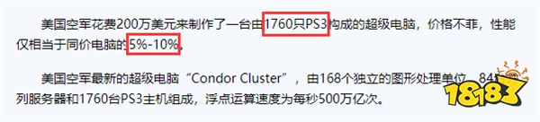 但随后有报道称,这台花费200万美金由1760台PS3组成的超级电脑,其性能仅相当于同价位电脑的5%-10%。