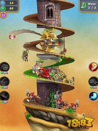 《高塔骑士》是一款竖版的塔防游戏,游戏将战场放在了一座螺旋形的高塔上,敌我双方是在盘旋上升的阶梯上展开厮杀,玩家除了可以控制英雄、召唤士兵外,更重要的是能即时建造城堡。新建的城堡会被插入顶层下方,城堡级数越多,敌人要攀爬的距离就越长。游戏中共有10种不同功能的可建造城堡,虽然每次上阵只能携带3种,但按照玩家不同的策略喜好,游戏中能自行搭配出的组合数量可是非常惊人的。