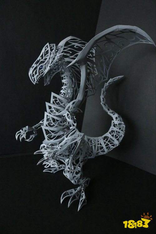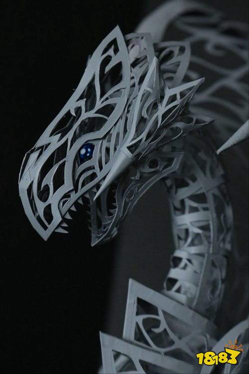 打住打住!差点又放飞自我了,今天未荻要介绍的可是位当之无愧的大触!网友“晴季”将用一手出神入化的纸雕技术,将青眼白龙的英姿立体化地重现,镂空造型给人一种制作繁琐的感觉,一看就是很厉害的样子!