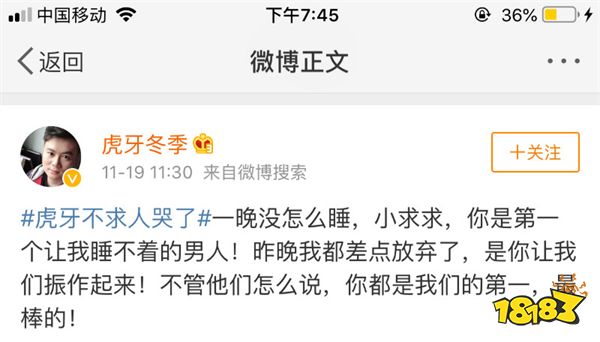 看着冬季和不求人接连发着微博,再加上#虎牙不求人哭了#的话题已经连续两天登上了微博热搜,越来越多的路人与粉丝开始关注此次偷塔事件。