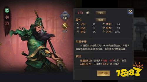 关羽千里走单骑。徐州之战刘备战败。关羽经张辽劝说,约法三章暂时投降了曹操。为曹操斩颜良诛文丑解白马之围。后得知刘备在袁绍处便想去找刘备。曹操为了挽留关羽便挂避客牌对其避而不见。关羽只能不辞而别。沿路上经过了五个关口,守将都不放行,关羽连闯五关,连杀六人,最后与刘备会合。
